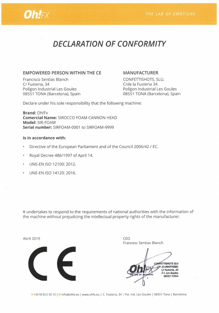 Profesionálny & kompaktný generátor & štýlové penové delo OH! FX model SIROCCO s dostrekom cca 10 – 12 m s nízkou spotrebou penovej kvapaliny.Napájanie 30V DC.